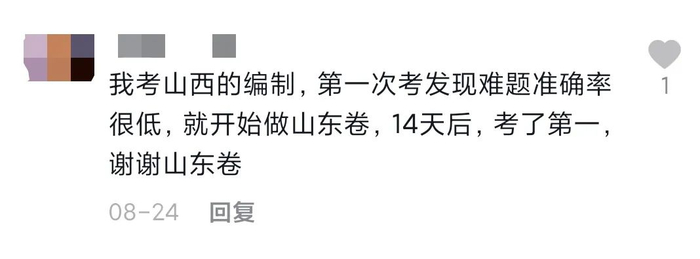 这里有一个形象的例子:一位山西考编人士为了练习难题准确率,开始做山东卷,14天后喜提第一。