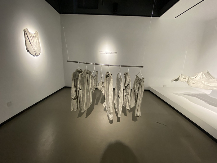 除了建造它们的人,只有野生动物居住在这里。蜜蜂会在废弃的房子里筑巢,还有很多蚂蚁在里面生活。我们把这些虎头蜂、蚂蚁之类的昆虫也搜集回来,做成《来自鬼城的礼物》中的另一部分。也许它们才是“鬼城”的原住民。 “来自“鬼城”的礼物”农民工衣物