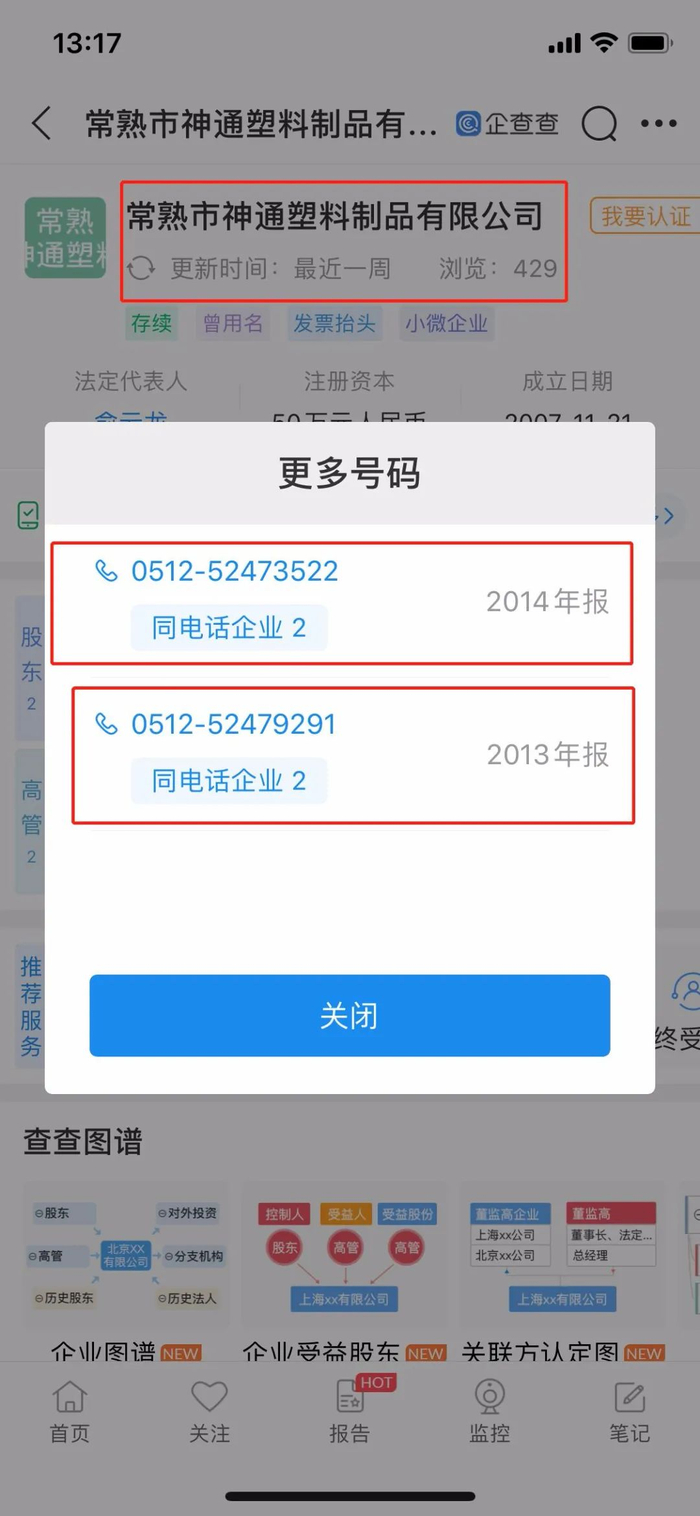 据企查查工商信息显示,搏益医疗工商注册资料中留下的联系电话为0512-52473522,而同样在工商资料中采用过这一联系电话的还有一家名为常熟市神通塑料制品有限公司的企业(下称“神通塑料”),在神通塑料2014年向工商系统申报年检时,其申报的联系方式则正好为0512-52473522。