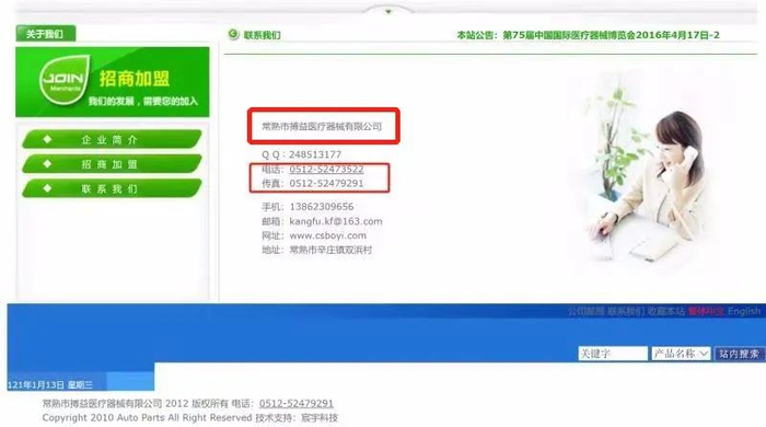 在搏益医疗的官方网站上“联系我们”一栏中,至今留下的电话和传真号还分别为0512-52473522和0512-52479291两个号码。