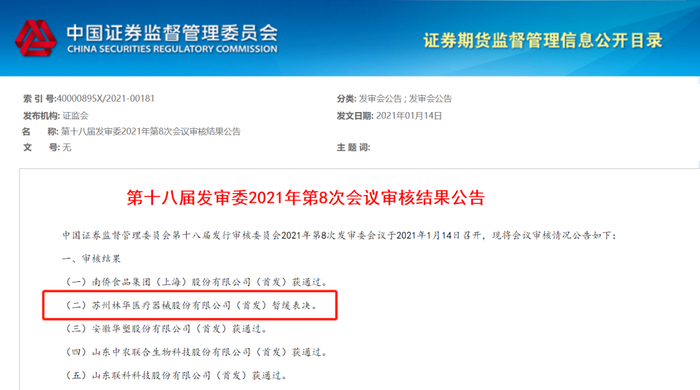 显然,林华医疗也因此不幸成为2021年在核准制下被暂缓表决的首例。