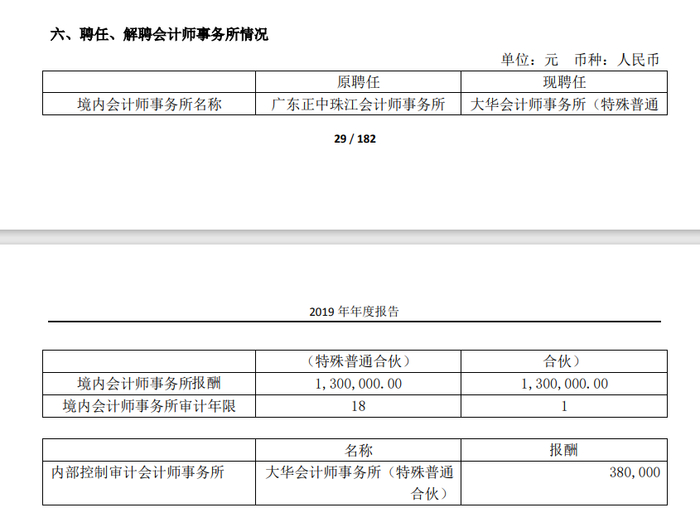 鉴于正中珠江已连续多年为公司提供审计服务,为确保公司审计工作的独立性、客观性和公允性,经与正中珠江友好协商决定终止 2019 年度的审计聘任。综合考虑公司未来业务发展和审计的需要,经董事会审计委员会提议,公司聘请大华为公司 2019 年度的财务报告和内部控制审计机构,对公司(含子公司)进行会计报表审计、内控审计、净资产验证及其他相关的咨询服务等业务。