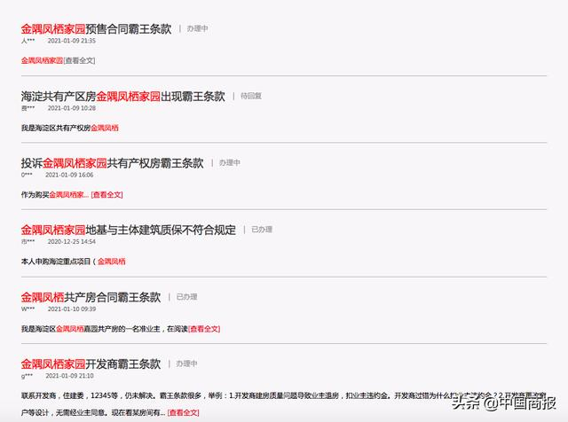 中国商报记者也在网上检索到一些购房者发布的帖子或留言,对预售合同中的部分条款提出异议,希望能与开发商协商,并恳请相关部门主持公道。
