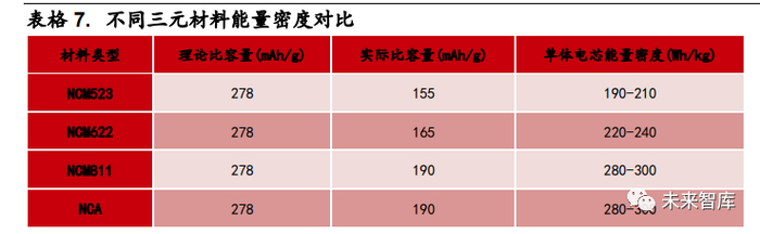 2)高镍三元:三元电池由低镍转向高镍的技术趋势明确,能量密度提升和成 本降低是两大核心驱动因素,未来高镍三元电池有望覆盖大部分中高端车型。