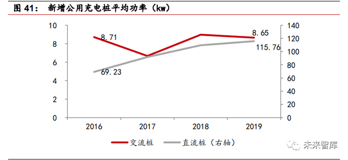 充电功率屡创新高,充电慢将成为历史。2016-2019 年新增公用充电桩平均功 率由 69.23kw 提升至 115.76kw。按照目前新能源乘用车百公里耗电 15kw 电 量计算,新能源乘用车通过直流充电桩充电 10 分钟即可行驶 100 公里,充电 半小时基本上能满足新能源出租车一天的运营里程需求,充电慢不再成为制约 新能源汽车发展的问题。且整车企业均表示未来会支持 180kw 的充电功率, 这意味着充电半小时即可满足 600 公里行驶需求,充电便捷性大大提升。