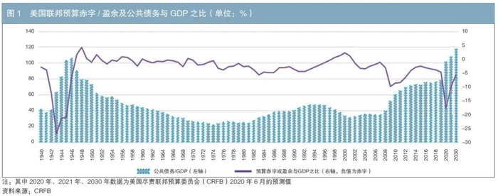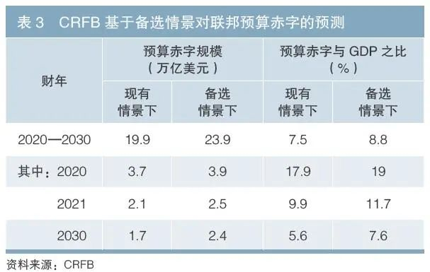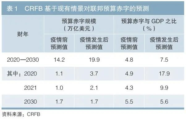 美国尽责联邦预算委员会(CRFB)于2020年6 月发布了预算预测报告,其中主要结论(均采用财年)如下。