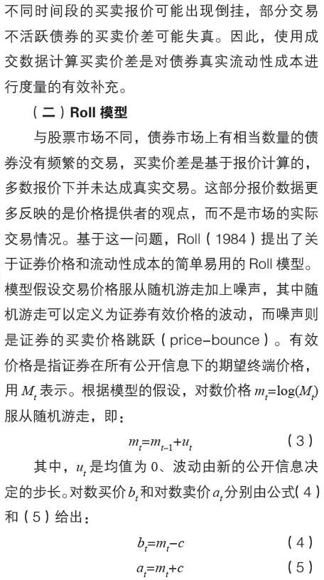 流动性成本 银行间债券市场 买卖价差 Roll 模型 Gibbs 测度