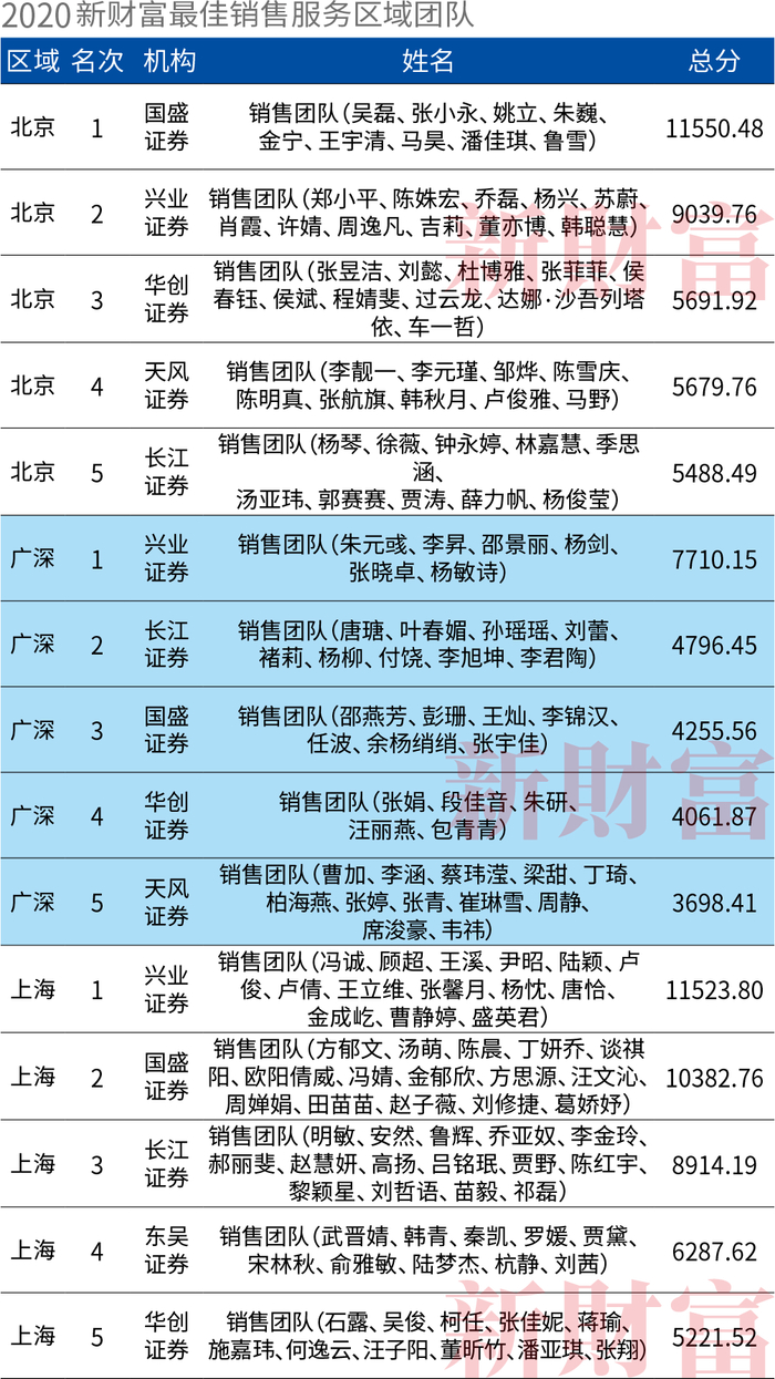 新财富最佳销售服务区域团队