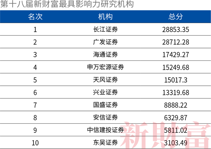 新财富最具影响力研究机构