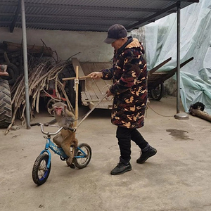 猴子骑着小车,杨林贵通过栓在车把和车尾的木杆,辅助猴子掌握方向和平衡。按照计划,今年春节,杨林贵将和往年一样,受邀要到一个特色小镇表演,从正月初一演到十五,报酬两万元。