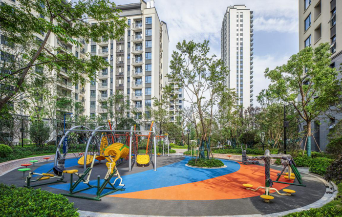 社区园林里还打造了包含康体乐园、儿童乐园、健康跑道、宠物乐园、邻里客厅在内的全龄化健康空间,为居民提供日常休闲健身处所;以及欢迎中心、文化节点、一级门廊、二级门廊、入户大堂的五重归家礼序,其文化性、生态型、宜居性在武汉自成一派。