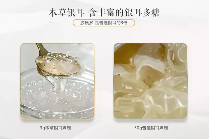 银耳胶质的核心成分是银耳多糖,美容功效和保健效果主要取决于它,姚小淑本草银耳的银耳多糖是普通银耳的3倍,所以胶质多多,营养也更多。