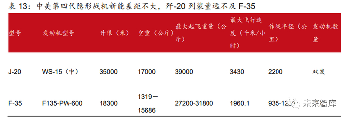 我国四代战机性能位于世界前列。我国第三代战斗机新机型歼-16,第四代战斗机歼-20 分别于 2016、2017 年开始服役,与美国最新隐形战斗机 F35 相比,歼-20 作战半径大, 飞行速度快,具有超级巡航能力和更高机动能力,目前是国际先进空中作战武器,市场潜 力巨大。四代机 FC31 于 2012 年实现首飞,有望在近期迎来定型、列装,新一代战斗机 定型及产量的增加将推动战斗机主机厂实现业绩拐点。