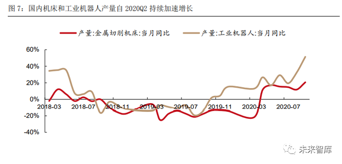 疫情对复工的抑制带来自动化需求。疫情对复工情况的压制持续叠加上近年来用工成本的 持续提升,与需求迅速恢复之间形成了人力产能的缺口,从而加速了中小企业使用自动化 产线替代人工流水线的意愿。从国内工业机器人和机床的产量数据看,2020 年 Q1-3 国内 工业机器人累计产量达 16,075 台,累计同比增长 18.2%,增幅逐月扩大,充分反映了国 内优势制造业的自动化强趋势。