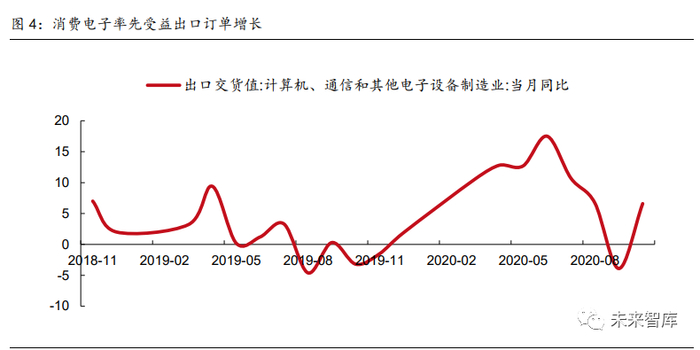 消费电子率先受益海外需求增长。从各细分板块来看,计算机、电子、通信设备等消费电 子领域的出口交货值率先出现大幅提升,2020 年 1-10 月累计出口交货值同比增长 4.3%, 10 月当月同比增长 6.6%。主要原因是 2020 年上半年,东南亚、印度等国工厂因疫情大 范围停工,全球消费电子制造业对国内依赖程度加大,给国内自动化产能设备带来机会。