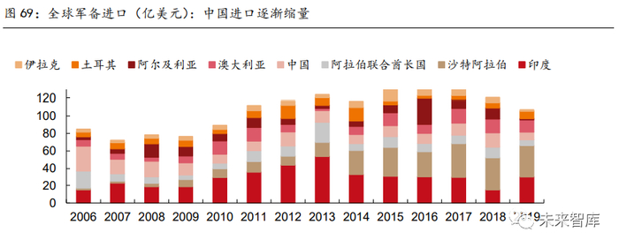 2.1.2 军备进出口:中国军备出口量大幅提升,未来增量空间巨大。