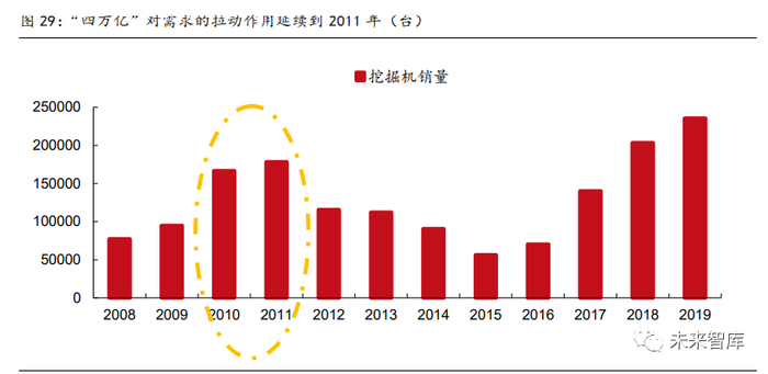 通过复盘 2009 年“四万亿”计划对工程机械的影响可以发现,资金面对基建需求的支撑 不会局限于当年。以挖掘机为例,2010 年和 2011 年挖掘机销量分别为 16.68 万台和 17.84 万台,分别较计划实施的 2019 年增长 75.7%和 87.9%,直到 2012 年“温州动车”事故 后基建需求才开始收缩。因此我们认为资金面对基建需求的拉动作用将延续至 2021 年, 继续看好 2021 年工程机械板块的表现。