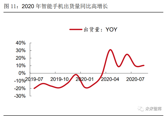 汽车和电子两大领域需求持续恢复。从下游需求看,2020 年工业机器人在汽车和电子两 大领域的应用都将有一定程度的回升。随着国内疫情趋稳,可选消费回补明显,2020Q1-3 国内乘用车累计产量达到 1,263 万台,累计同比下降 15%,9 月同比增长 13.7%;电子领 域,受益于 5G 换机潮和 TWS 产业的快速崛起,2020 年前三季度消费电子景气度持续提 升,IDC 预计 2020 年全球智能手机出货量将同比增长 1.5%。