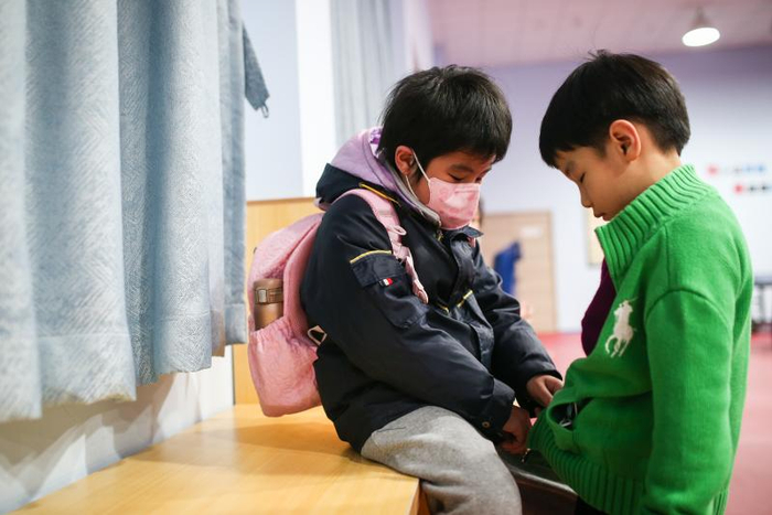 背上书包,三个孩子走出训练房。等爸爸开车过来的时候,他们玩起了唐诗接龙。