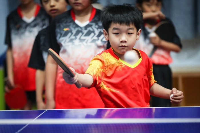 记者分别问三个孩子:“是不是喜欢打球?”“有没有自己的偶像?”两个女孩显然对乒乓球更感兴趣,谢知睿的偶像是现世界排名第一的陈梦,谢知宸则喜欢刘诗雯。谢知恒还有些“三心二意”,他说“想踢足球”。然而一旦站到球台前训练,他又是一丝不苟,非常专注。