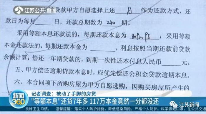 蒲先生说,自己算了一笔账,如果按照当时合同约定的4.2%左右的年利率计算,20年期的房贷,先息后本的还款方式要比等额本息多还三四十万。