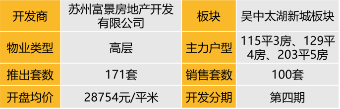 监测5个项目开盘,共推出1217套房源,吴中区、吴江区、高新区、姑苏区均有分布,其中纯新盘项目3个,老推新项目2个。