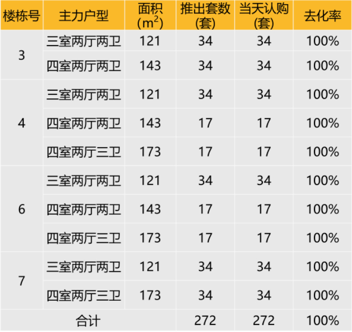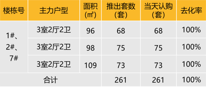 本次推出户型面积及开盘当天认购去化情况
