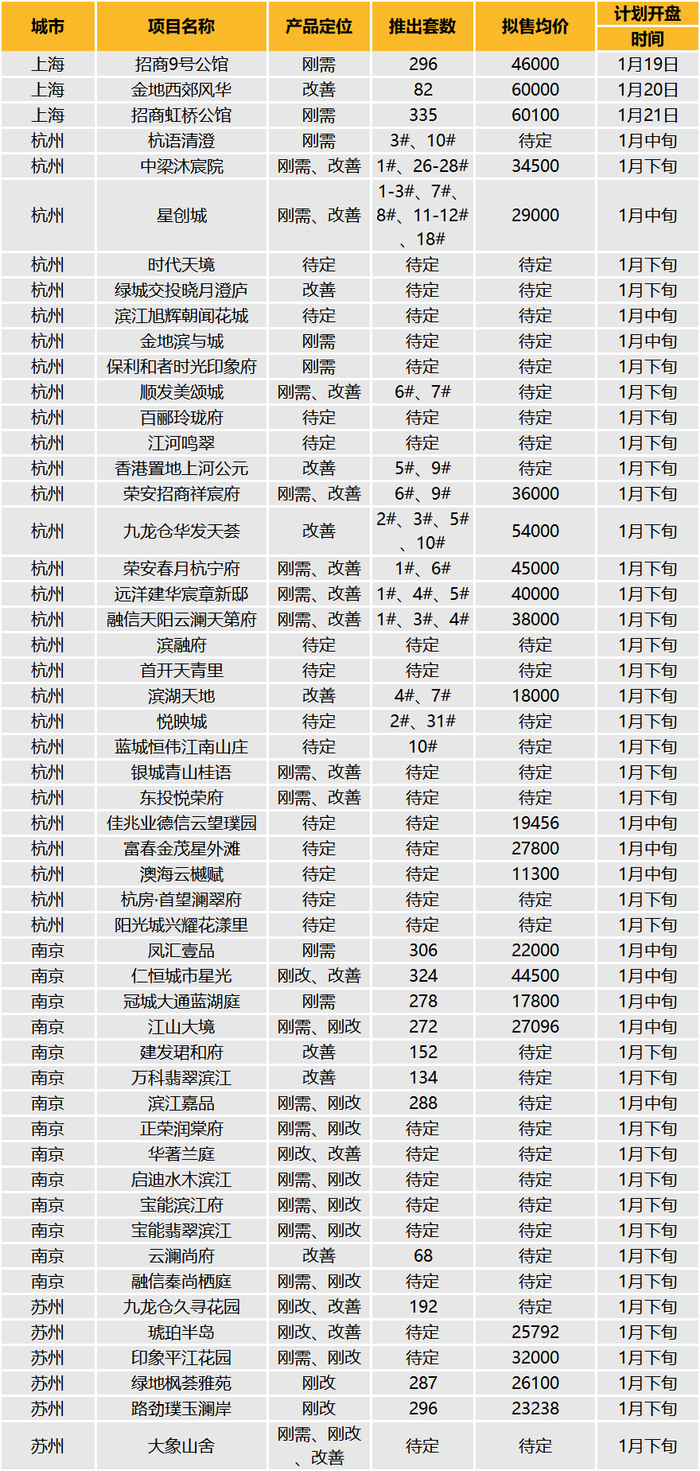 表:12月19日-1月15日部分典型项目开盘信息