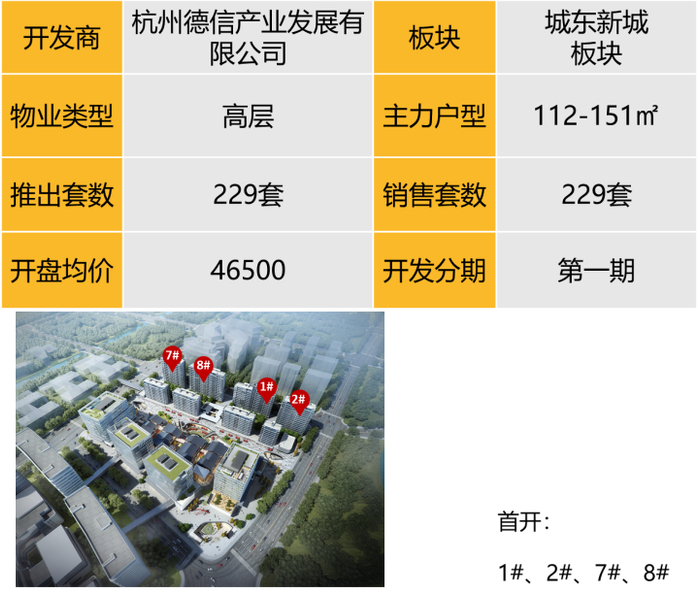 开盘详情:12月20日,德信中心首开高层1#、2#、7#、8#229套房源,户型建面112-151方。