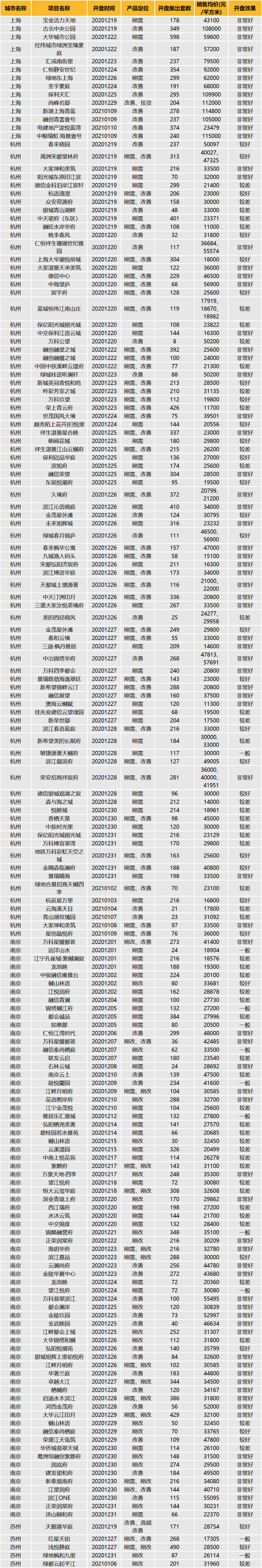 表:2021.01.16-02.12部分典型项目开盘信息