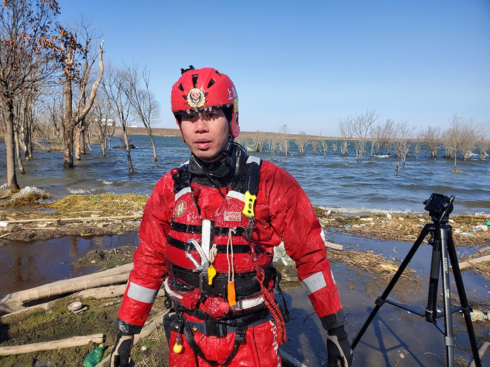 “抓牢了,不要掉下去了。”交代完毕,方舟与另一名消防员王斯佳驾驶两艘橡皮艇,连同其他6名消防员,带齐装备前往事故水域。