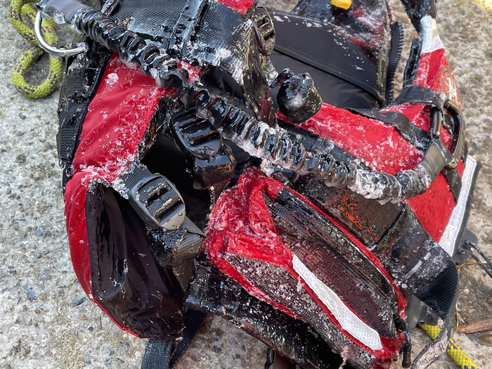 方舟称:“水域救援服虽有防水保暖作用,但当时天气异常寒冷,被打湿后,手套、头盔开始吸热,体感温度也迅速下降。”