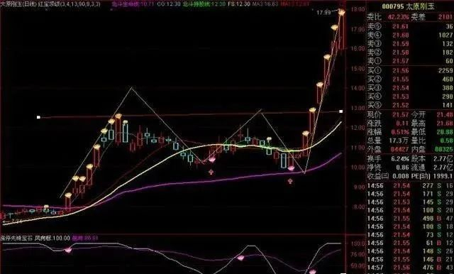 大牛股太原刚玉,也在空中筑了双底,然后突破。在筑第2个底时,可以介入,并以该底为止损位,然后在启动突破平台时加仓。