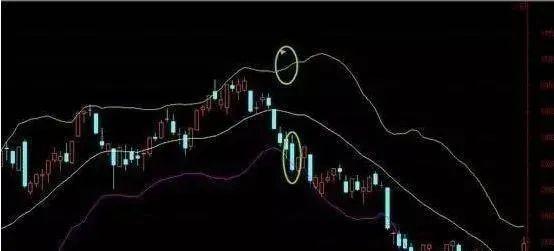股价经过一轮连续的漫长暴涨之后,股价一直维持在布林下轨上方,突然有一天股价站在布林下轨之下,布林下轨线和中轨线均向下,同时布林下轨线创出历史低点,那么此时基本可以确定阶段顶部已经形成。