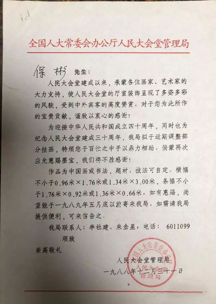 保彬多次受邀为人民大会堂作画