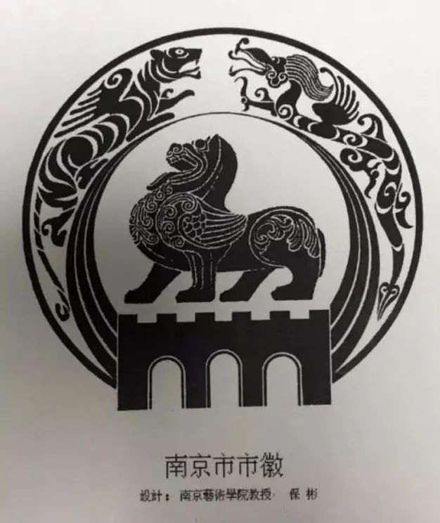 市徽上,貔貅站在明城墙之上,左右有龙虎环抱,寓意了南京是“帝王之宅”“龙蟠虎踞”的中国著名古都。