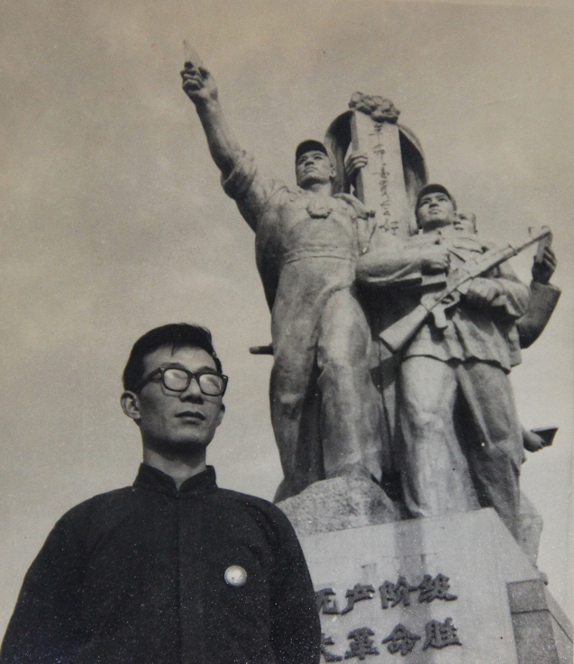 时隔半世纪,保彬首次回到自己的作品前合影