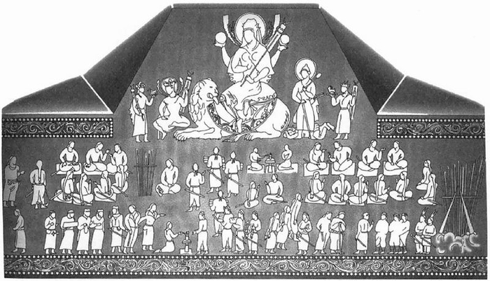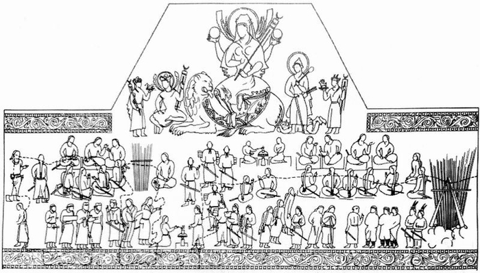 3)在所有其他右侧的人群中,M41被最好地呈现出来。在每组人物中,两位坐在领导者身旁的官员正在相互交谈,其中每组的另外几人则悄然聆听。