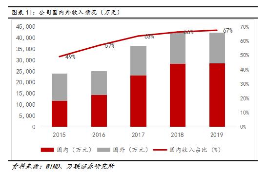收入占比逐年提高,国内市场大有可为。2015年,公司主要市场布局海外,国内收入占比略低于海外,但近年来,随着国内汽车、家电、消费电子产品等领域的快速发展,下游需求的逐步提高,公司在国内的收入占比逐年增加。截至2019年,公司国内收入约2.9亿,较2015年增加143.1%,占比达67.4%。随着国内下游需求领域的逐步开发,国内市场有望继续突破,未来发展空间广阔。