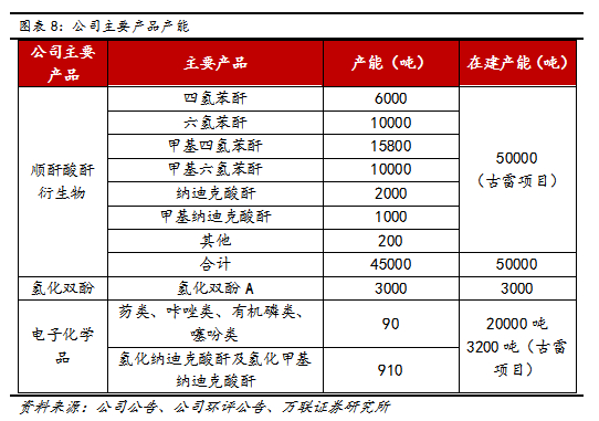 技术领先、产品齐全,顺酐酸酐衍生物持续放量:公司目前是国内规模最大、产品线最齐全的顺酐酸酐衍生物生产企业之一,主要产品包括四氢苯酐、六氢苯酐、甲基四氢苯酐、甲基六氢苯酐、纳迪克酸酐、甲基纳迪克酸酐等,主要产品指标行业领先,部分核心产品质量达到进口替代水平。顺酐酸酐衍生物下游包括电气设备绝缘材料、涂料、复合材料等诸多领域,用途广泛,市场前景较好,发展空间较大。通过并购山东清洋,公司产能大幅增加,此外,随着“古雷项目”的逐步落地,顺酐酸酐衍生物有望持续放量。