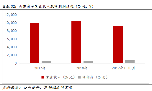 并购山东清洋,巩固顺酐酸酐衍生物行业领先地位。公司2019年12月13日发布公告,拟收购山东清洋新材料有限公司100%股权,2020年1月完成股权变更登记手续,山东清洋成为公司全资子公司。山东清洋新材料有限公司成立于2010年,主要产品有甲基四氢苯酐、甲基六氢苯酐、碳五混合物、甲四聚合物等,拥有10,000吨/年甲基四氢苯酐和5,000吨/年甲基六氢苯酐的生产装置。并购后,公司现有15800吨/年甲基四氢苯酐产能和10,000吨/年甲基六氢苯酐产能,顺酐酸酐衍生物产能大幅增加,帮助企业满足日益增长的下游需求外,进一步发挥产业协同效应,提高生产技术,占领产品市场,巩固公司再顺酐酸酐衍生物领域上的行业领先地位。据公司公告披露,山东清洋2017年、2018年和2019年1-10月营业收入分别为9948.1万元、10493.74万元和9249.79万元,整体呈上升趋势,且营业收入较高,说明公司产品市场认可度高,市场规模大,通过并购山东清洋可以帮助公司进一步占领市场,提高市场份额。