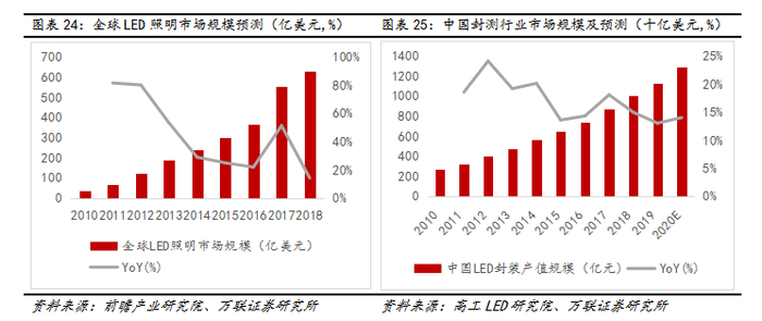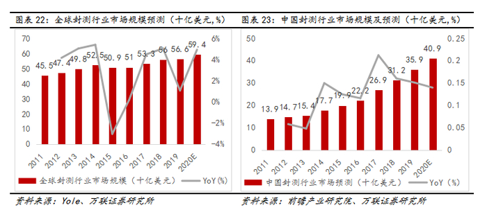 5G时代引领电子信息制造业快速发展,电子元器件封装材料领域大有可为。随着5G、人工智能物联网等领域的不断发展,我国电子信息制造业和智能终端应用需求高速增长,封装技术发展迅速,对封装材料的要求更高。顺酐酸酐衍生物与环氧树脂形成的固化物是一种理想的封装材料,广泛应用于从电阻、电容、电感、二极管、三极管等基本电子元件到半导体器件、集成电路等复杂器件的封装。2019年全球封测市场规模为566亿美元,其中中国市场规模约359亿美元,同比增长达15%,随着下游需求的进一步增加,预计2020年封测市场规模可达409亿美元,封装材料领域市场空间广阔。