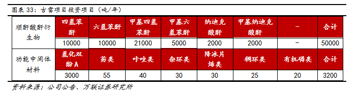 签署古雷项目,助力公司产能释放与技术升级。2020年1月3日,公司签署古雷项目《项目投资协议》,计划投资10亿元在古雷港经济开发区投建生产基地,主要用于建设顺酐酸酐衍生物及电子化学品生产线及研发中心,建设内容包括5万吨/年顺酐酸酐衍生物以及3200吨功能材料中间体等。签署股类项目对公司意义重大,主要包括以下几个方面: