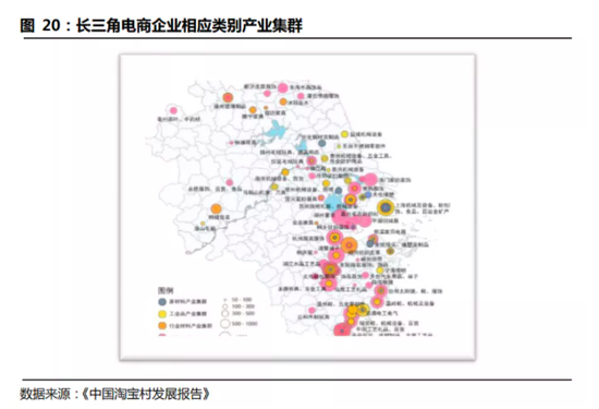 1. 百货供给端较为集中。百货的运输半径较长,更容易实现产地集中。江苏省黄桥镇,生产了世界上1/3的小提琴;湖南山区小城邵东县,生产了世界上70%的一次性打火机;快递之乡桐庐县的分水镇,是中国的制笔之乡。电商“单点发全国”的模式,符合百货产地集中的特征,并且使这些产业化的集群更具竞争力,又反过来进一步加剧了产地集中。