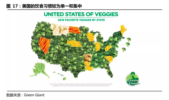本地化供给造成了各地食材的不同,也造就了中国的饮食地域多样化特征。四川人爱吃豌豆尖,广东人爱吃菜心,湖北人爱吃红菜苔。美国蔬菜品牌商Green Giant调研中发现,美国有39个州消费者最爱吃的蔬菜都是同一种——西兰花。“舌尖上的中国”,流通上的难题。