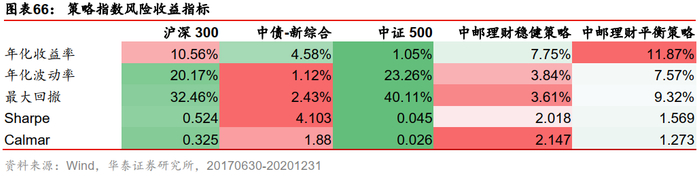 在FOF市场规模稳步增加的同时,许多与FOF产品在理念或形式上相似的产品也不断涌现。例如2020年中邮理财与中证指数公司联合推出的基金组合策略指数。中证中邮理财基金指数系列包含稳健策略基金指数和平衡策略基金指数,该指数以基金经理历史表现为选基依据,综合多个定量指标全面衡量基金经理表现并优选对应基金。决定权重时则在不同风格、不同规模之间充分分散配置,编制方式科学合理。且其历史夏普、Calmar皆超2,回撤控制能力较强,适宜中低风险偏好的长线资金跟踪投资。