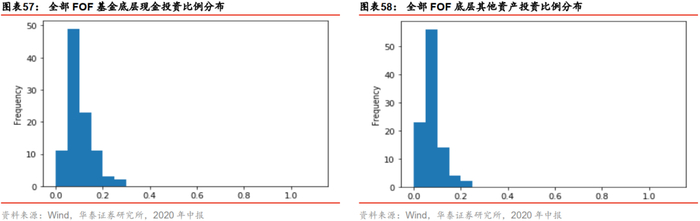 4.在第四章中,我们提取出市场上全部FOF产品的重仓子基金,研究了重仓子基金的共性特征,并对子基金权益类基金经理进行了抽样检验,计算其各项业绩指标在同类基金经理中的排名百分比。此外,我们还对市场上所有FOF产品进行了仓位穿透,观测各类产品的底层资产配置比例。