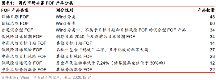 1. 对于目标日期型FOF,我们将到期日在2040年及以前的产品定义为低风险FOF,其余归为中高风险FOF。