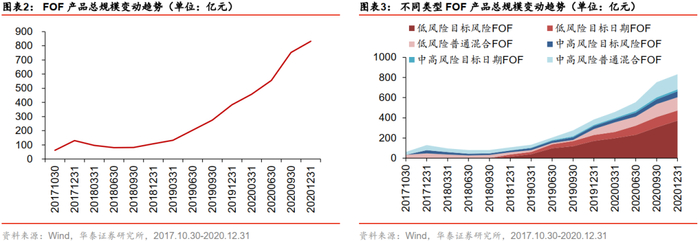 市场概览:公募FOF产品规模持续增加,低风险FOF产品增速更快