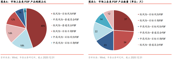 市场概览:目标风险FOF规模增速较快,低风险产品规模更大